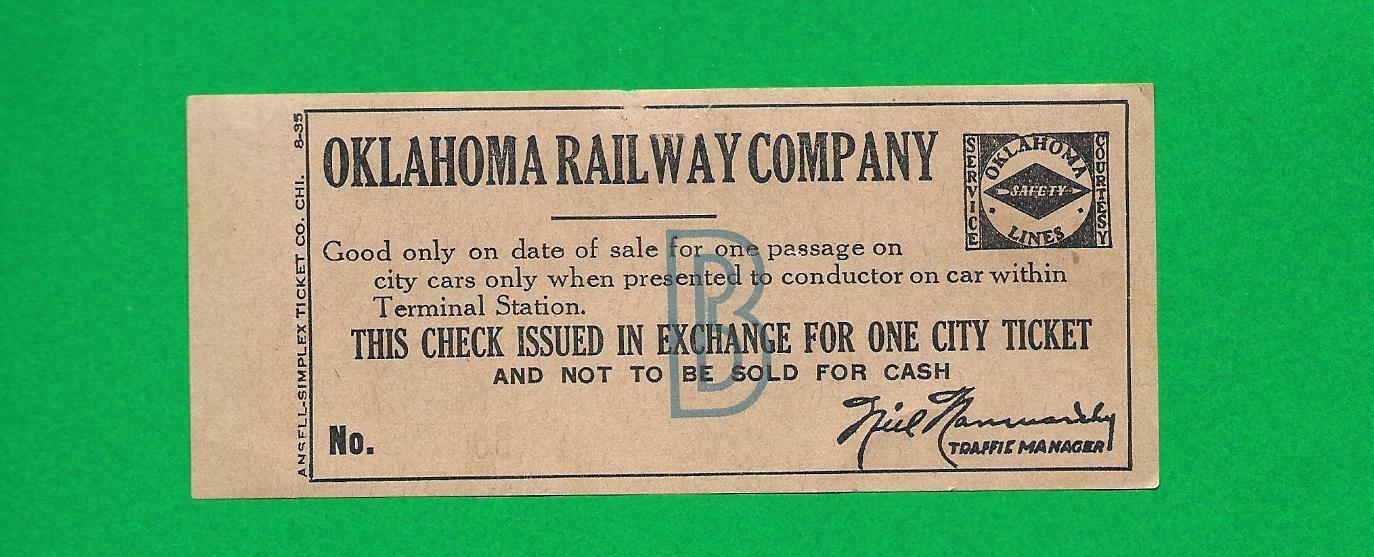 1900''s Oklahoma Railway Sample Street Car Ticket