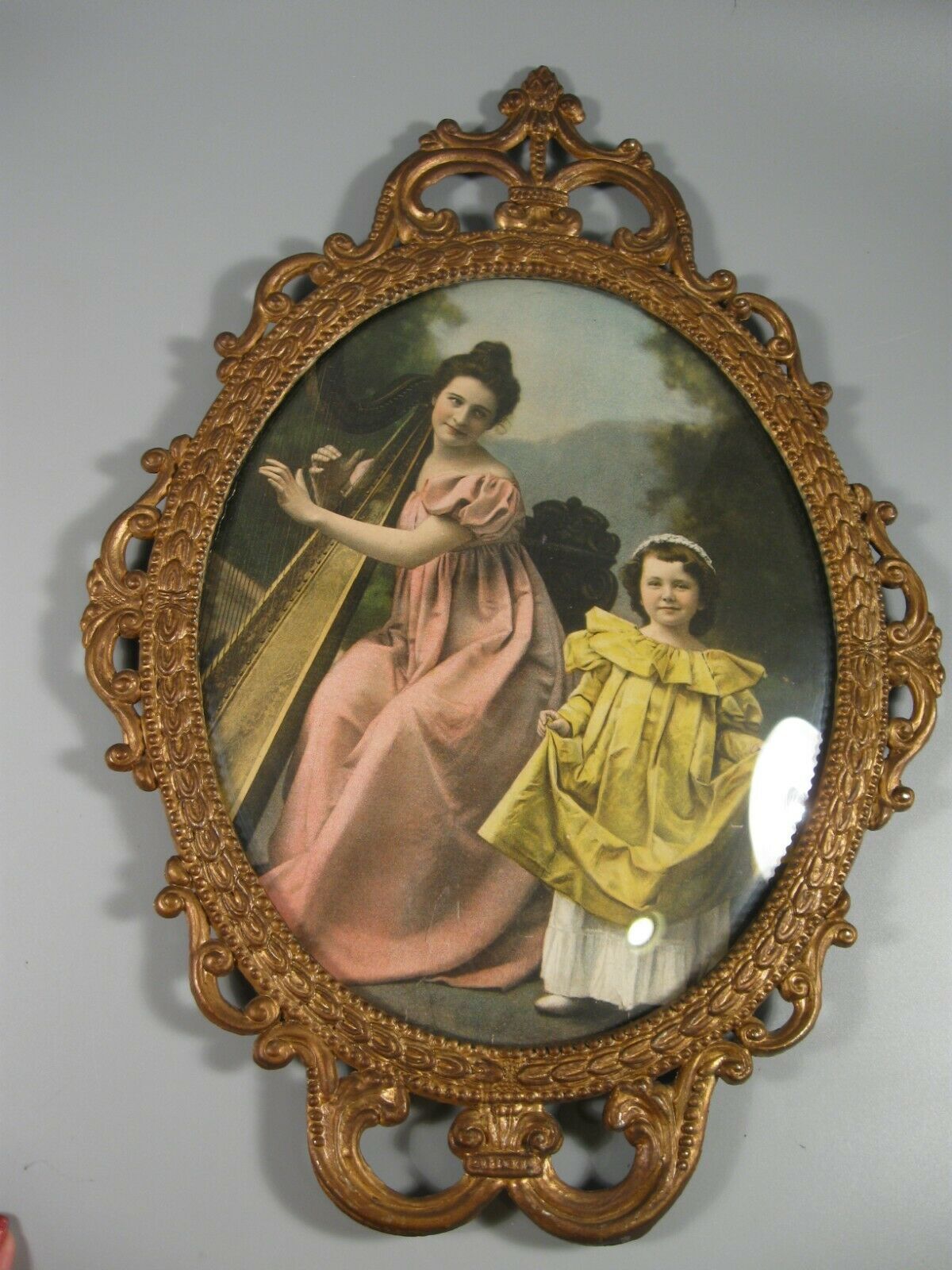 Antique Metal Frame Curved Glass Print/Photo? 17" x 12"
