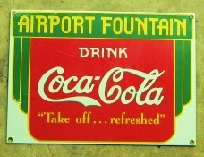 COKE AIRPORT FOUNTAIN PORCELAIN OVERLAY METAL SIGN NR