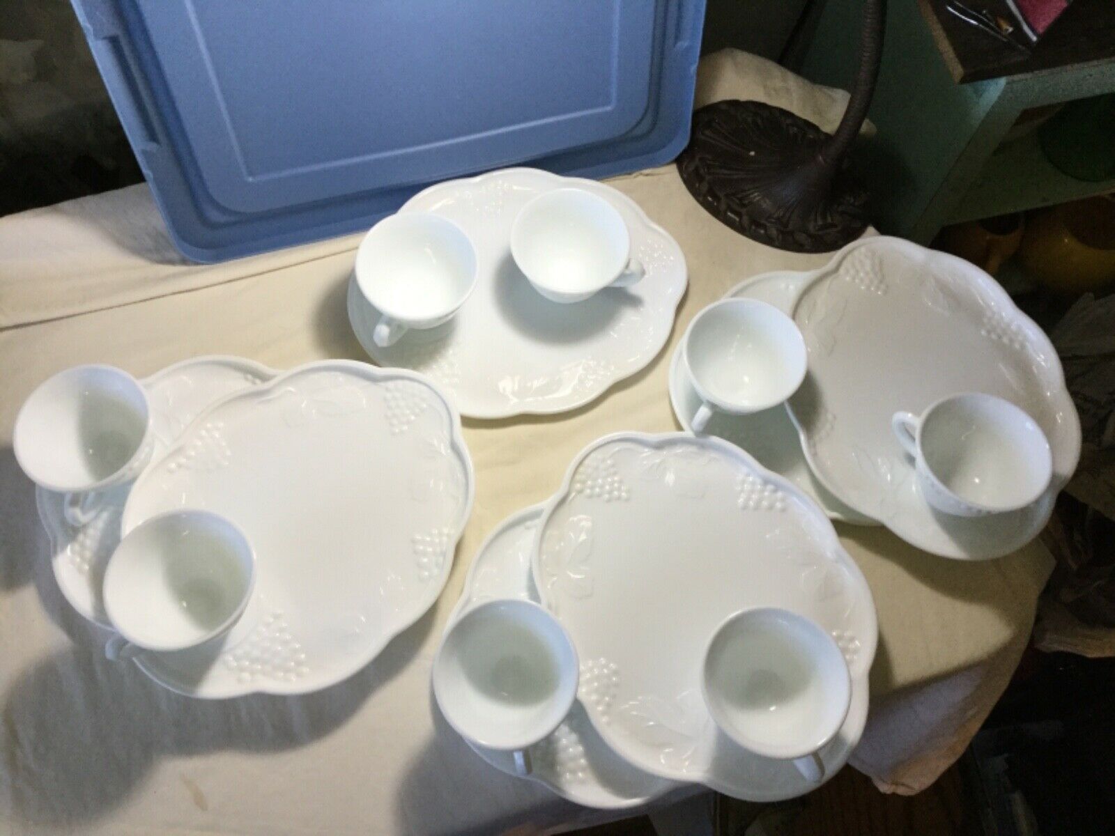 Harvest Grape Luncheon Snack Plates and cups Set of 7 Vintage milk glass