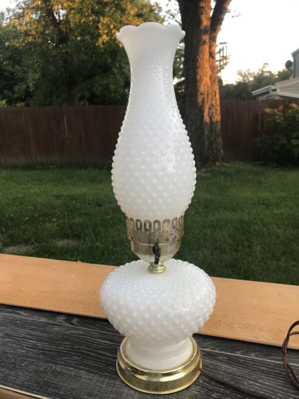 Title (ebay affiliate link): Vintage White Hobnail Milk Glass Electric Hurricane Lamp With Ruffled Chimney