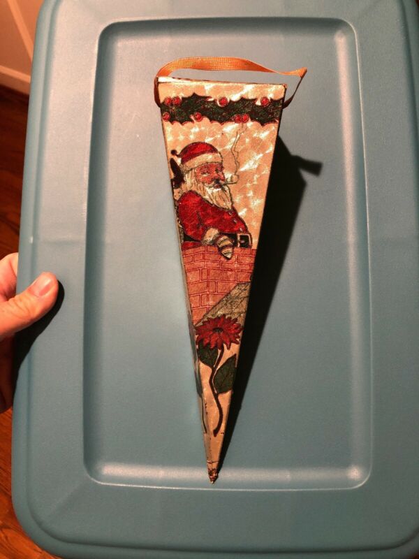 Title (ebay affiliate link): Vintage US Foil Co Christmas Candy Box Shiny Santa
