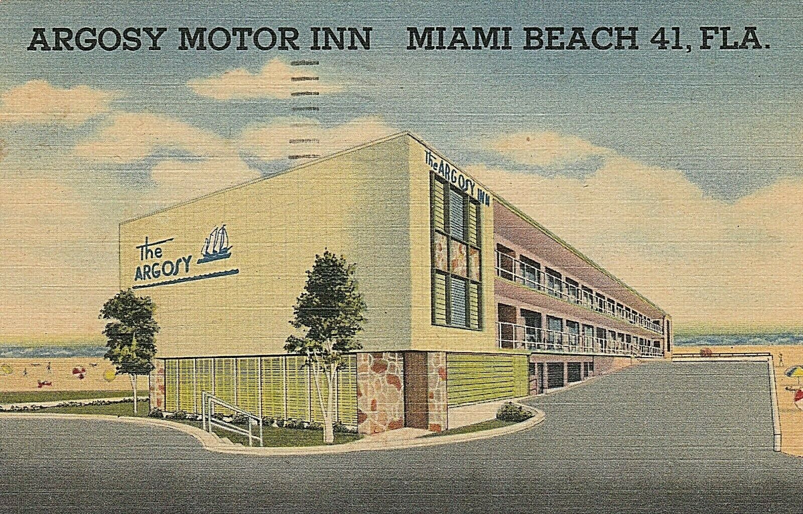 Title (ebay affiliate link): OLD LINEN POSTCARD MIAMI BEACH HOTEL " ARGOSY MOTOR INN " 1952