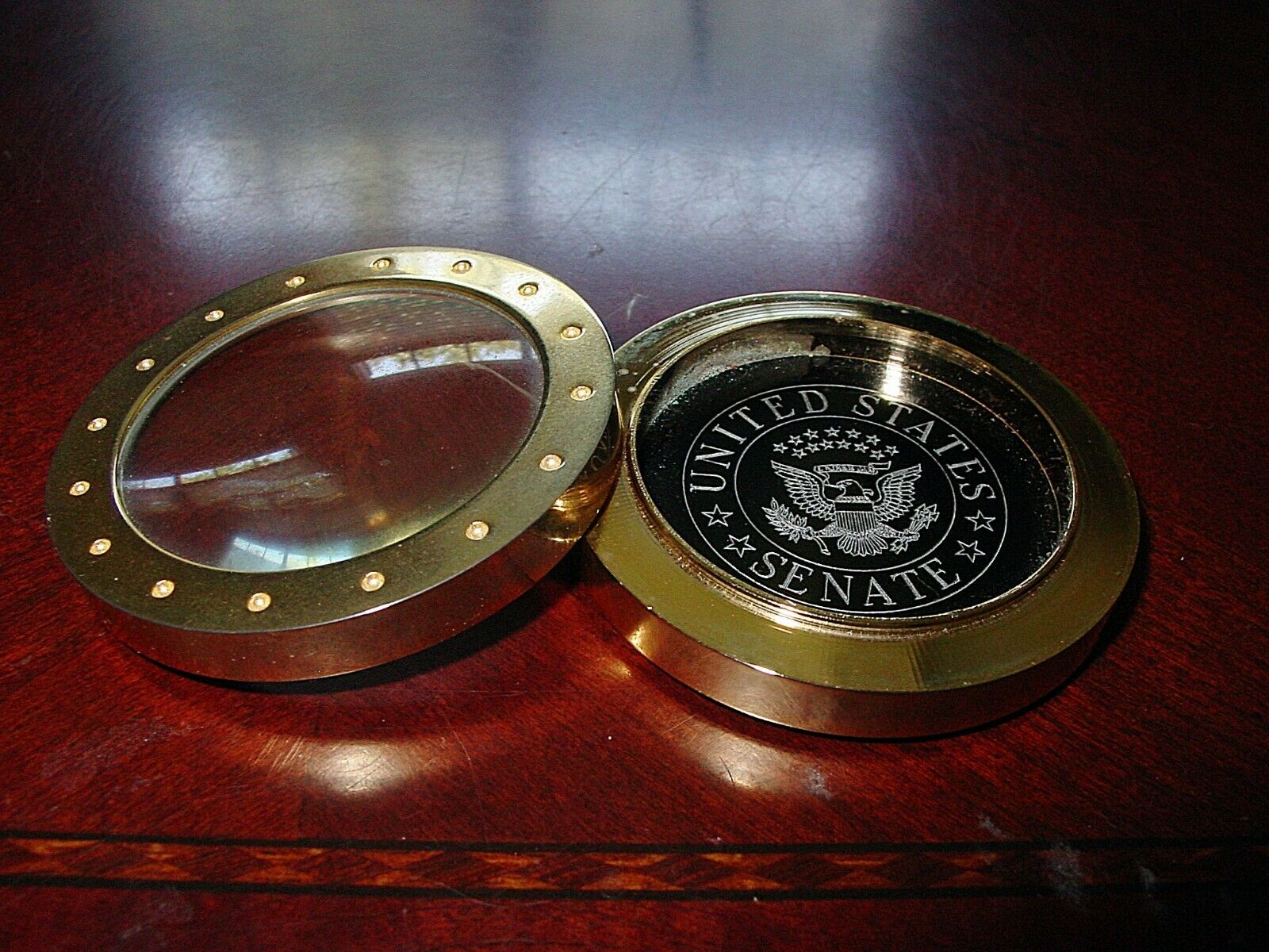 United States Senate 2pc Combination Desk Paperweight / Magnifying Glass