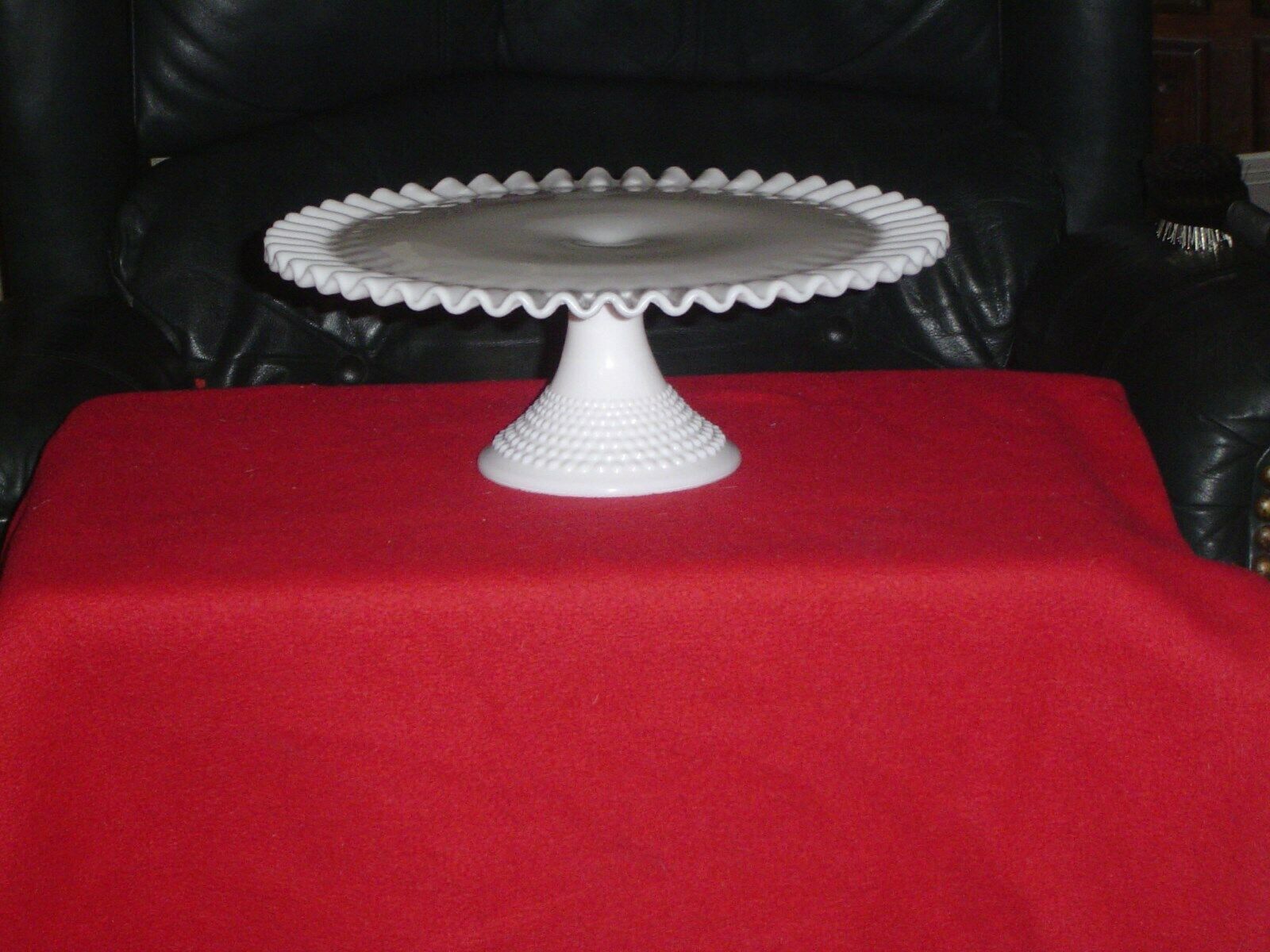 Title (ebay affiliate link): FENTON WHITE MILK GLASS HOBNAIL FOOTED 13" CAKE PLATE, SALVER TRAY- RIBBON EDGES