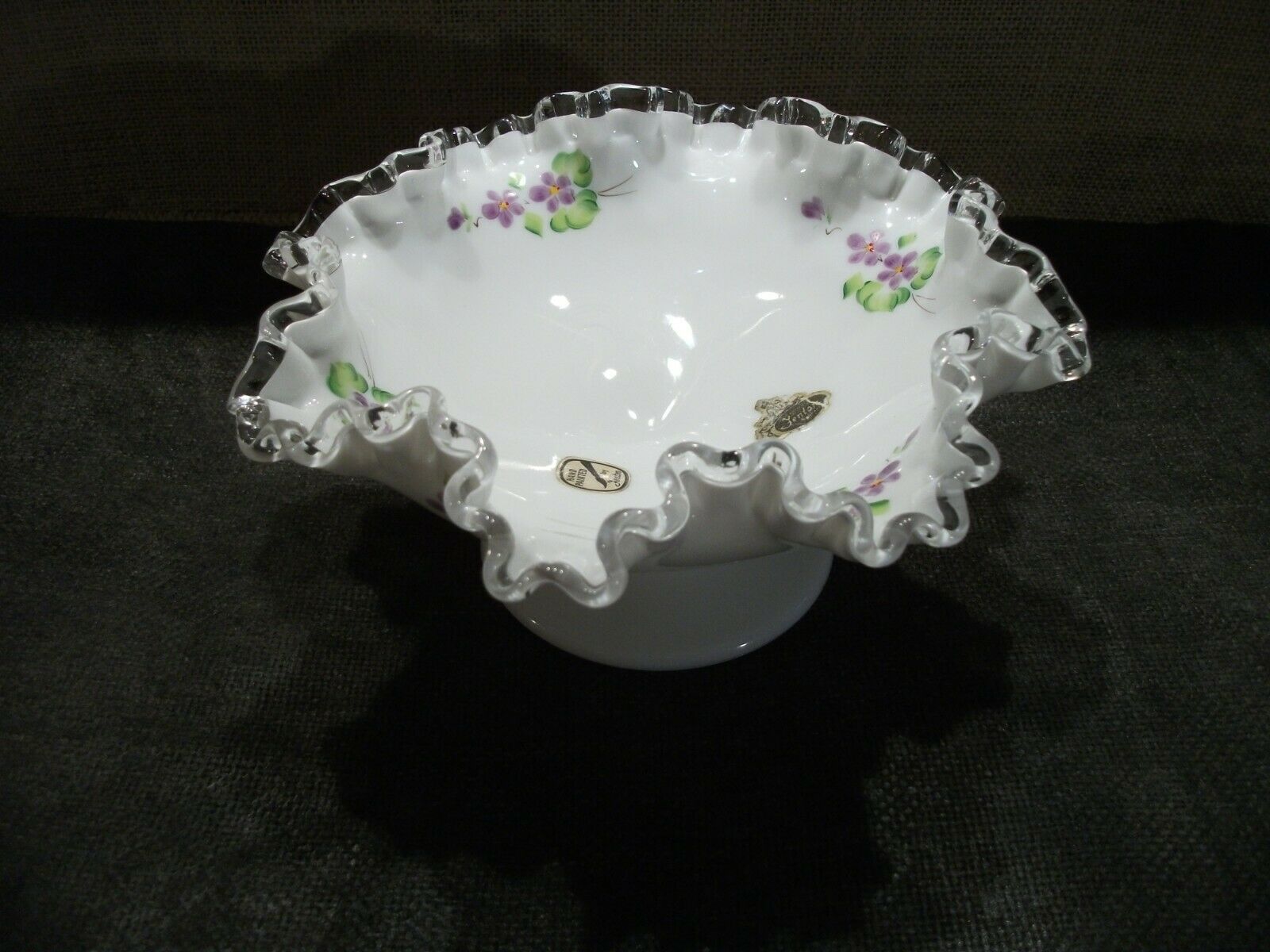 Title (ebay affiliate link): Fenton Silver Crest Milk Glass Crimped Ruffled Hand Painted Signed Bowl