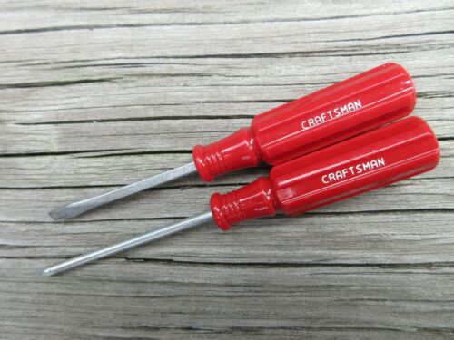 Vintage CRAFTSMAN Solid Red-Handled Small Screwdriver Set of Two