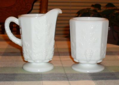 Milk Glass Sugar Creamer Paneled Grape Westmoreland