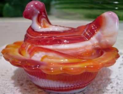 Title (ebay affiliate link): RUBY RED, ORANGE & MILK SLAG Glass HEN ON NEST BASKET
