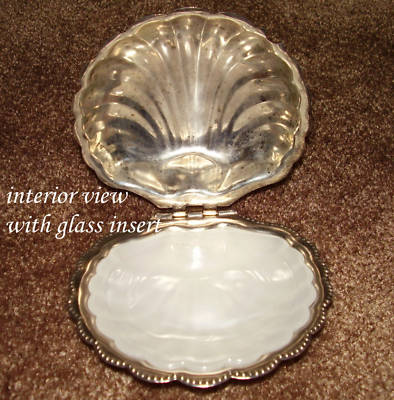 Silver MILK GLASS Covered SHELL Soap DISH Butter Plate