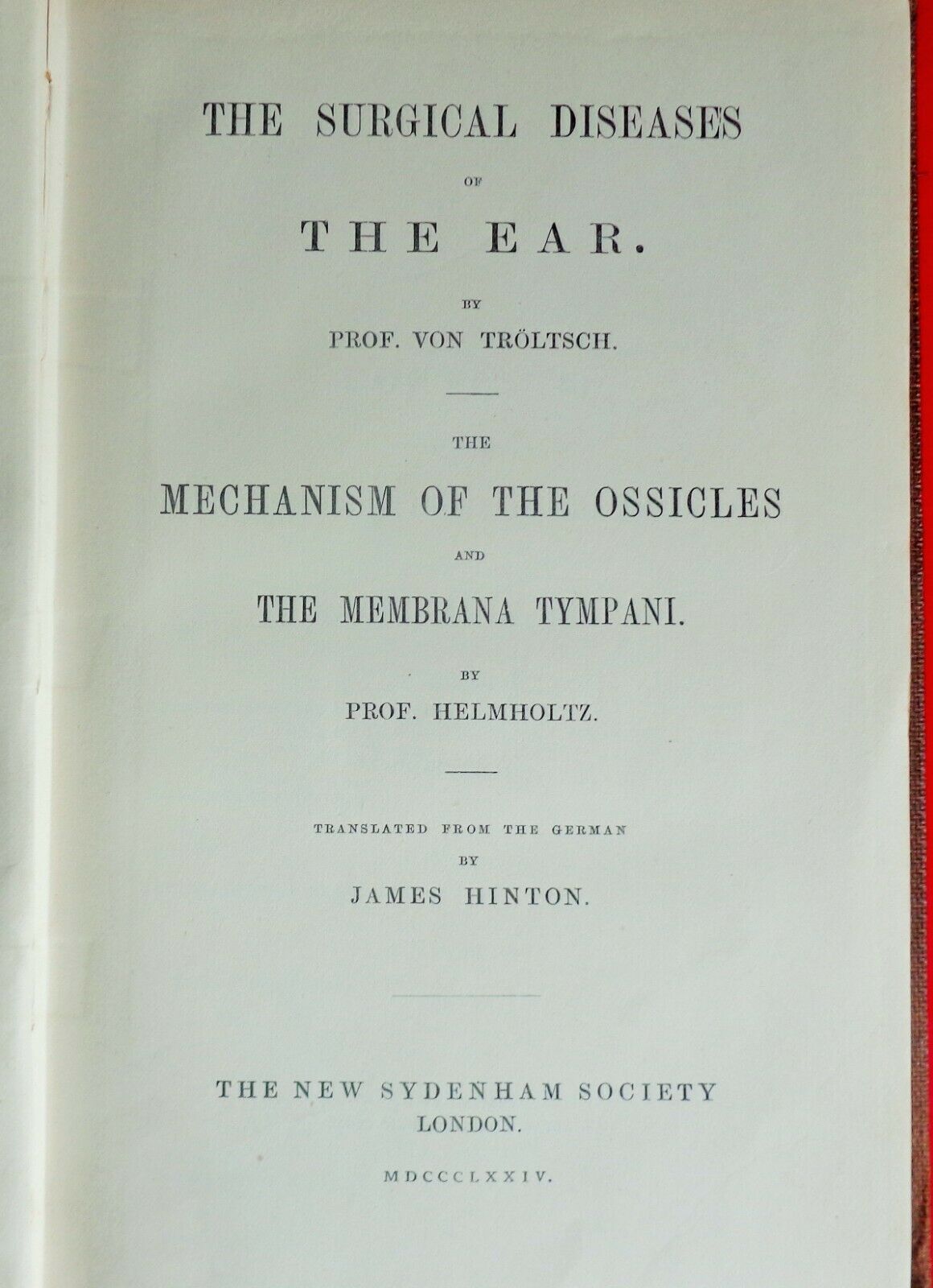 Title (ebay affiliate link): Rare Antique Medical Book 1874 The Surgical Diseases of The Ear Troltsch