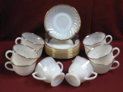 Vintage Fire King Oven Ware Teacups/Saucers Milk Glass