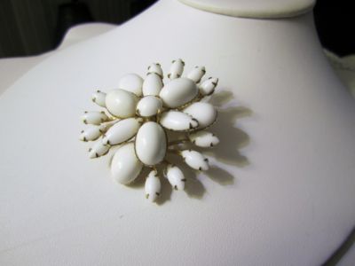 PRETTY GOLD TONE & WHITE MILK GLASS PIN BROOCH