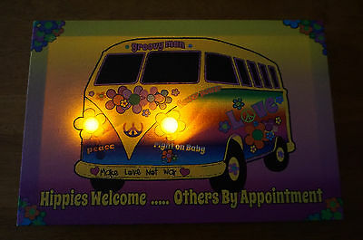 HIPPIES WELCOME Peace Love Flower Child Van Bus 60''s Style Home Decor Sign NEW
