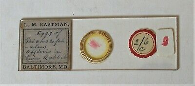 Title (ebay affiliate link): L.M.EASTMAN MICROSCOPE SLIDE, of EGGS of PARASITE in Rabbit Liver