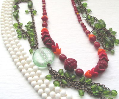 Vintage Necklace Lot of 3 Milk Glass Beaded Chunky Plus