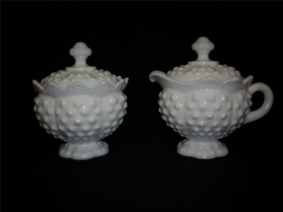 Fenton Hobnail milk glass sugar & creamer w/lids NEW
