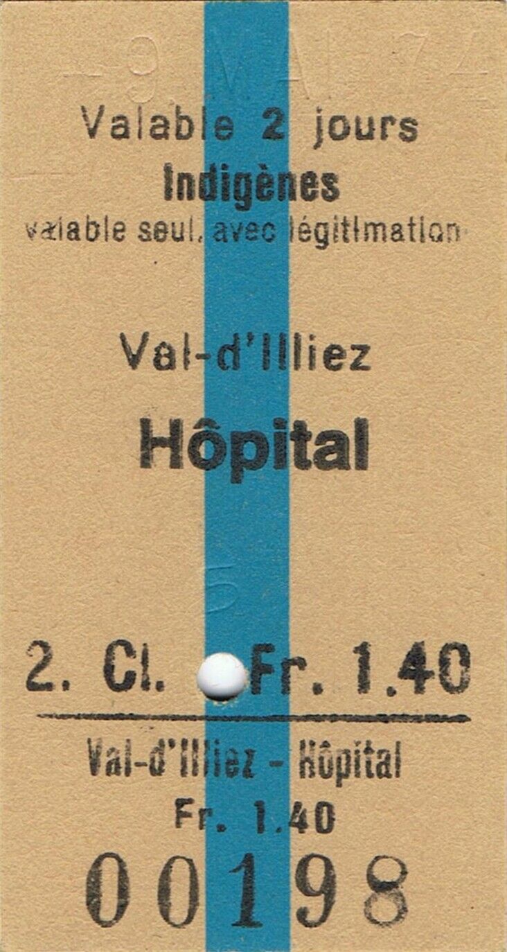Railway tickets Switzerland Val-d''llliez Hopital second class single 1974