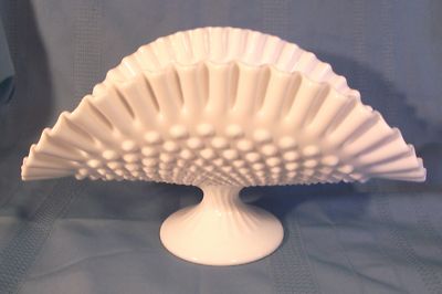Vintage Fenton Milkglass Hobnail Banana Bowl / Stand/NR
