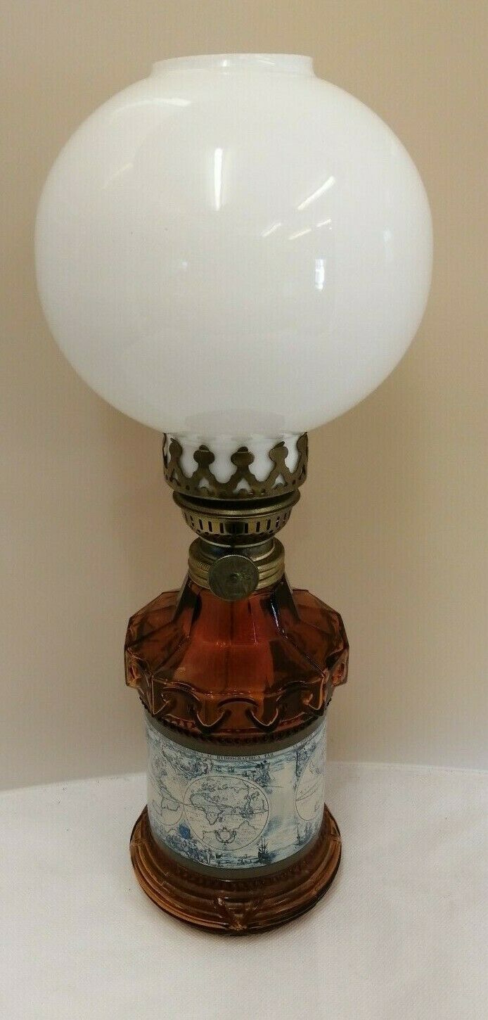 Title (ebay affiliate link): Unusual Quirky Map Of The World Design Vintage Oil Lamp & Milk Glass Shade (D4)