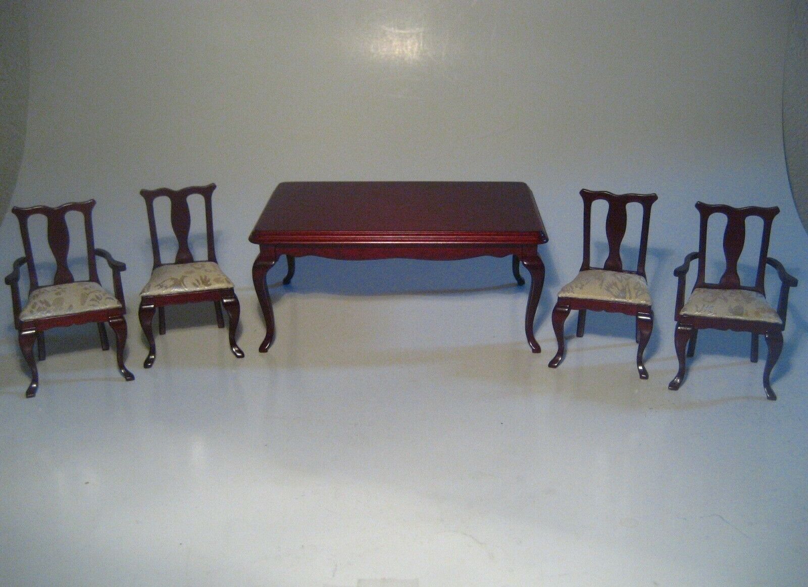 Title (ebay affiliate link): VINTAGE DOLLHOUSE MINIATURE FURNITURE DINING ROOM TABLE & 4 CHAIRS LOT NEW