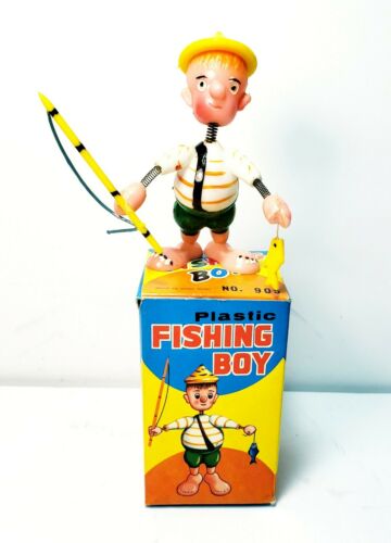 Vintage Fishing Boy Plastic Toy With Box Hong Kong