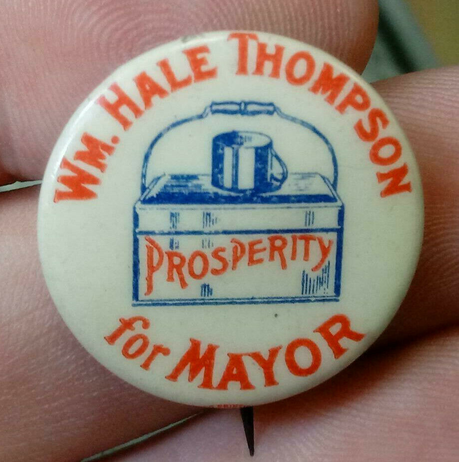 Title (ebay affiliate link): Rare Old 1920s William HALE THOMPSON For MAYOR Prosperity Pinback BUTTON CHICAGO