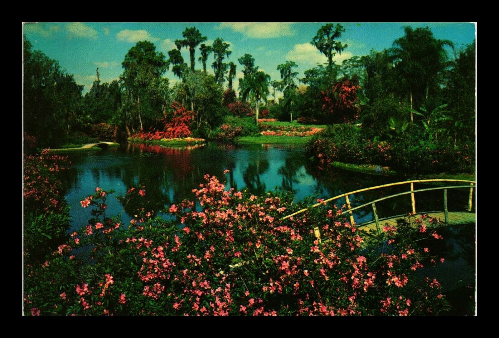 DR JIM STAMPS US CYPRESS GARDENS FLOWERS LAKE FLORIDA CHROME VIEW POSTCARD