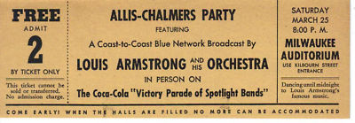 Allis Chalmers Party Louis Armstrong Unused Ticket Old