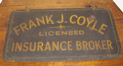 Antique Cast Metal Frank Coyle Insurance Broker Sign