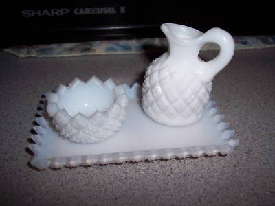 ENGLISH HOBNAIL CHILD MILK GLASS OPEN SALT CRUET TRAY