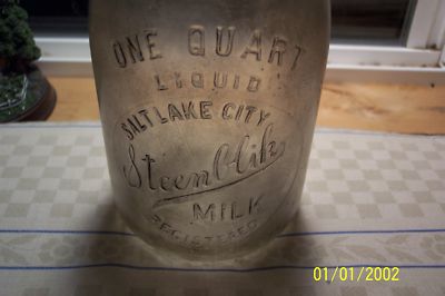Nice vintage"Steenblik"glass quart milk bottle! (Rare)