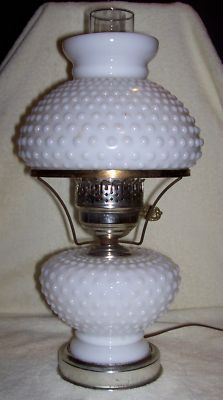ANTIQUE/VINTAGE/OLD WHITE MILK GLASS TABLE LAMP