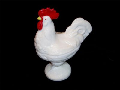 VINTAGE WESTMORELAND MILK GLASS ROOSTER/CHICKEN-MARKED