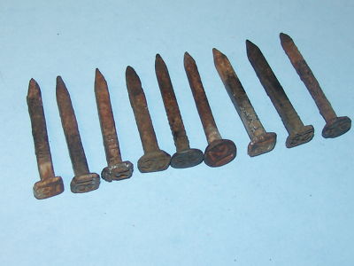 9 RAILROAD RR TRAIN SPIKES NAILS DATED 1915 thru 1936