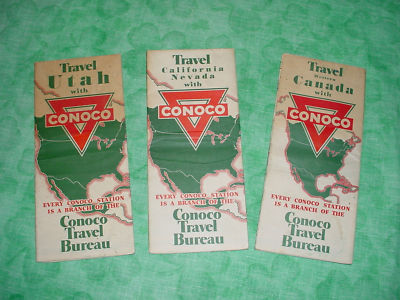 3 VINTAGE CONOCO ROAD MAPS 1930 'S