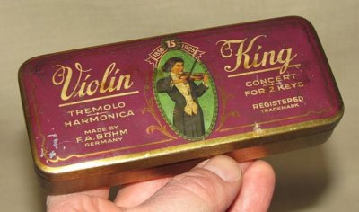 Antique VIOLIN KING HARMONICA TIN RARE!