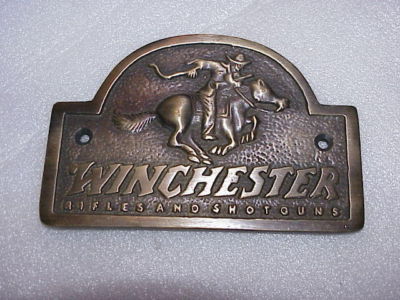 SOLID BRASS WINCHESTER HORSE AND RIDER STORE PLAQUE NR