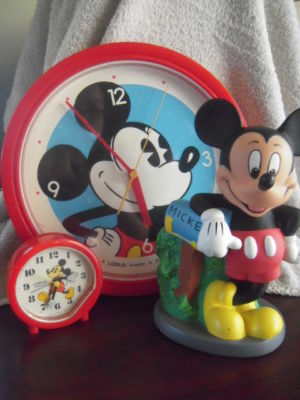 Title (ebay affiliate link): MICKEY MOUSE WALL CLOCK, SMALL CLOCK AND FIGURINE