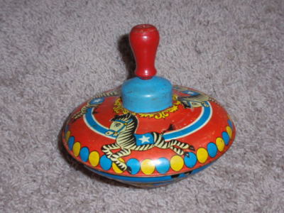Antique The Ohio Art Co Carousel Zebra spinning top 40s