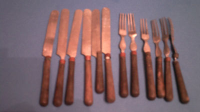 Vintage Set of 12 Wooden Handled Toy Forks & Knives