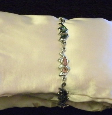 Vintage Silver Dolphin w/ Inlay Bracelet Antique