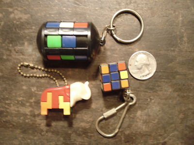 Title (ebay affiliate link): 3 VINTAGE PUZZEL KEYCHAINS ELEPHANT CUBE TOY LOT