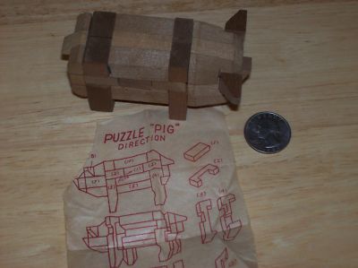 VINTAGE NON KEYCHAIN PUZZLE WOODEN PIG HOG