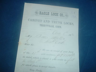 Title (ebay affiliate link): 1873 Eagle Trunk Locks/Plumb,signed/Terryville,Ct.,doc!