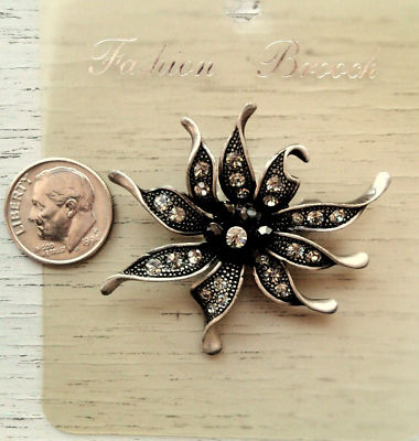 Title (ebay affiliate link): Antique Finished Flower Brooch/Pin with Glass Crystals