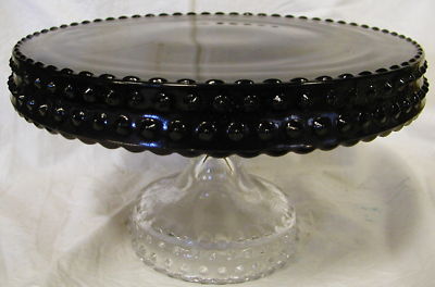 Black Milk Glass & Crystal Hobnail Cake Plate