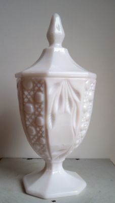Unique Fruit Pattern Milk Glass Candy Dish Compote EC!