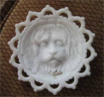 Columbia Glass Milk Glass Plate Dog Face FAB No RES