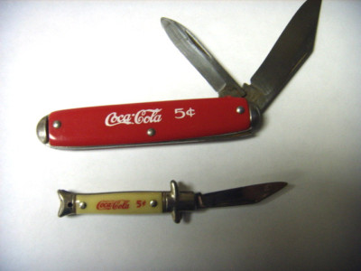 Coca Cola Knives lot of 2 different 5 cent Nice !